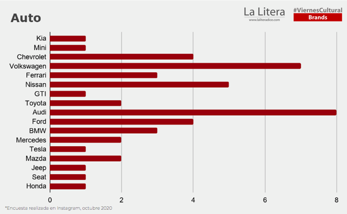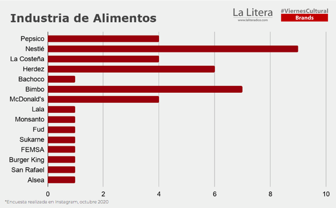 En mi cuenta de Instagram realicé una encuesta para conocer cuáles son las primeras marcas que llegan a la mente de mis seguidores cuando les menciono una industria o producto en específico. Estos son los resultados: