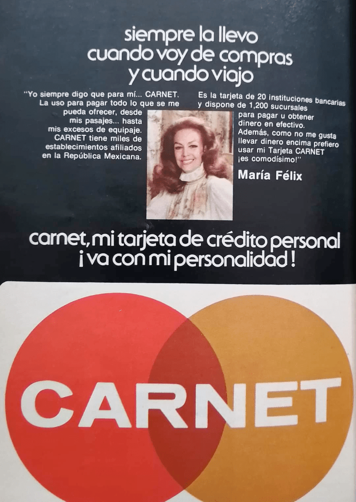 Curiosamente creada también en 1968, Carnet llegó a utilizar prácticamente el mismo logo que Mastercard, hasta la fecha no hay una razón clara por la que esto sucedió. En la década de los 80’s Carnet llegó a tener a íconos de la cultura mexicana como María Félix y Cantinflas para la promoción de sus tarjetas.