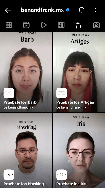 El segundo concepto recurrió completamente a la tecnología. El probador virtual está presente tanto en su página web como en filtros de Instagram. Con este probador, sin salir de casa puedes probar todos sus modelos usando tu teléfono. Con su filosofía de hacerlo cada vez más fácil para los «cuatroojos», acertaron de nueva cuenta al ofrecer una experiencia digital incluso antes de la llegada del Covid-19, y cuando esta llegó, el probador virtual fue otro elemento que no sólo sirvió para adaptarse a la pandemia, también es un elemento que le aporta mucho valor a la marca.