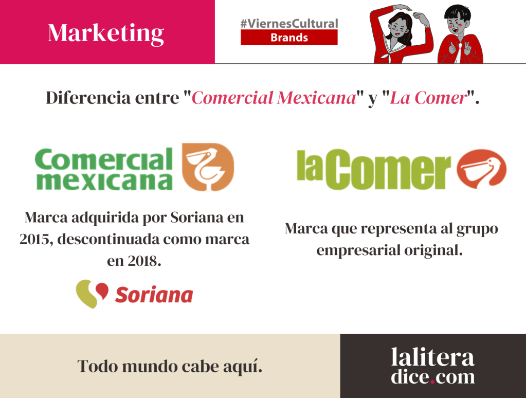 Al momento de concretar la compra, Soriana se quedó con los derechos de la marca «Comercial Mexicana», misma que quedó en desuso en el año 2018; mientras que el grupo original opera hasta el día de hoy bajo la marca «La Comer».