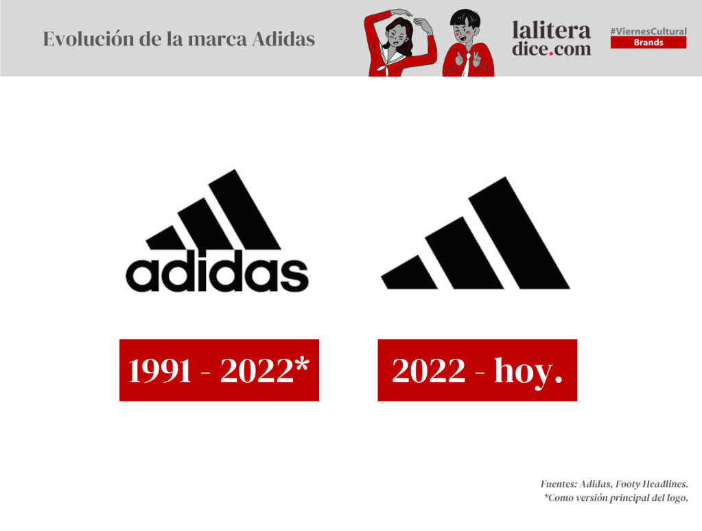 Este 2022, Adidas implementó un último rebranding, convirtíendose en las pocas marcas a nivel mundial que logran con éxito (como Starbucks, Mastercard y McDonald’s), transformar su marca de un imagotipo (texto y símbolo combinados) a un isotipo (sólo símbolo).