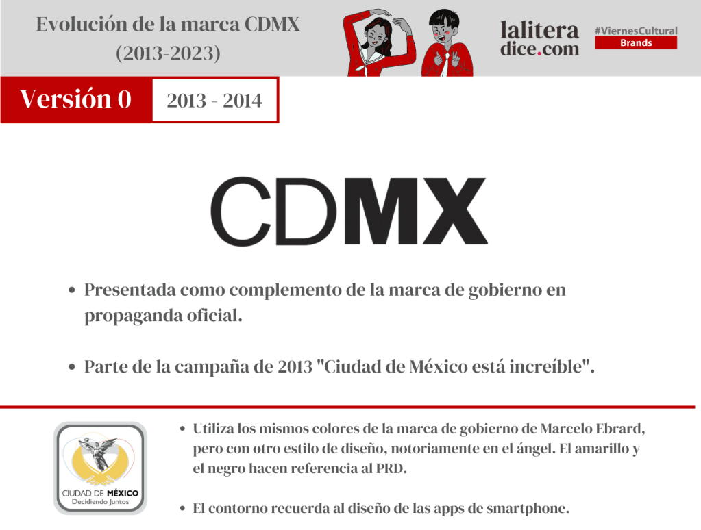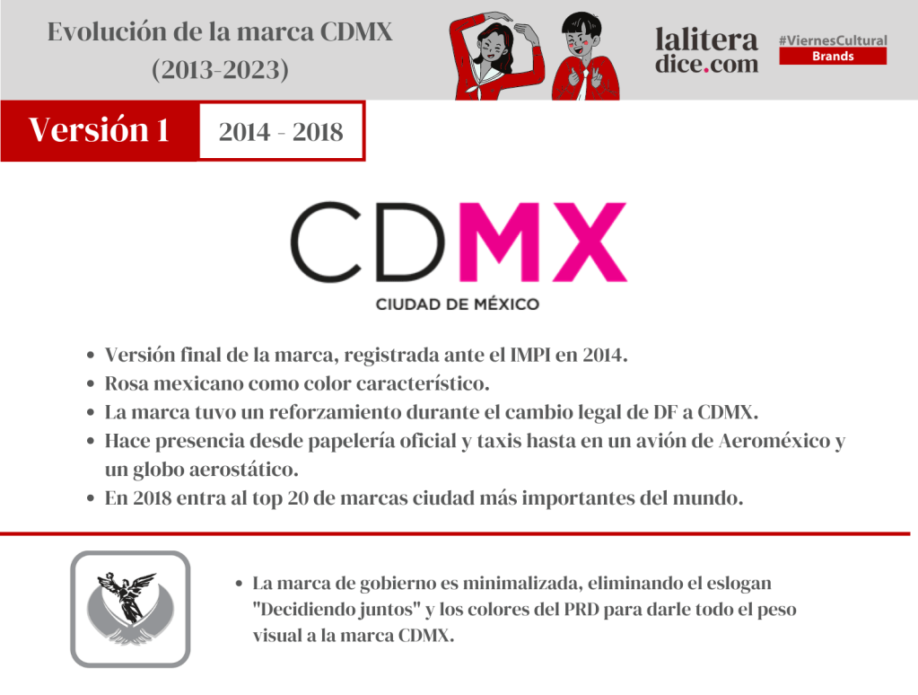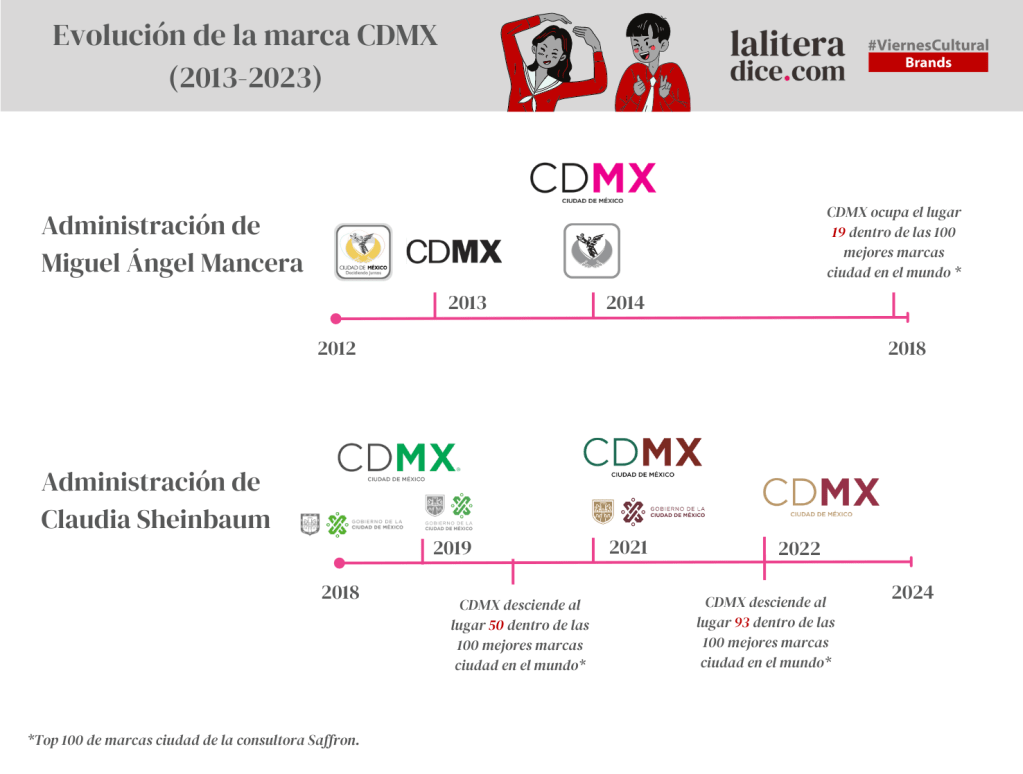 Como lo hemos visto anteriormente en La Litera, el concepto de una marca ciudad para el entonces Distrito Federal estuvo contemplada desde el sexenio de Marcelo Ebrard, pero fue hasta la administrción siguiente, la de Miguel Ángel Mancera, que se logró llegar a un resultado tan favorable que en 4 años la marca CDMX llegó al lugar 19 dentro del top 100 de las marcas ciudad más importantes del mundo de la consultora Saffron.