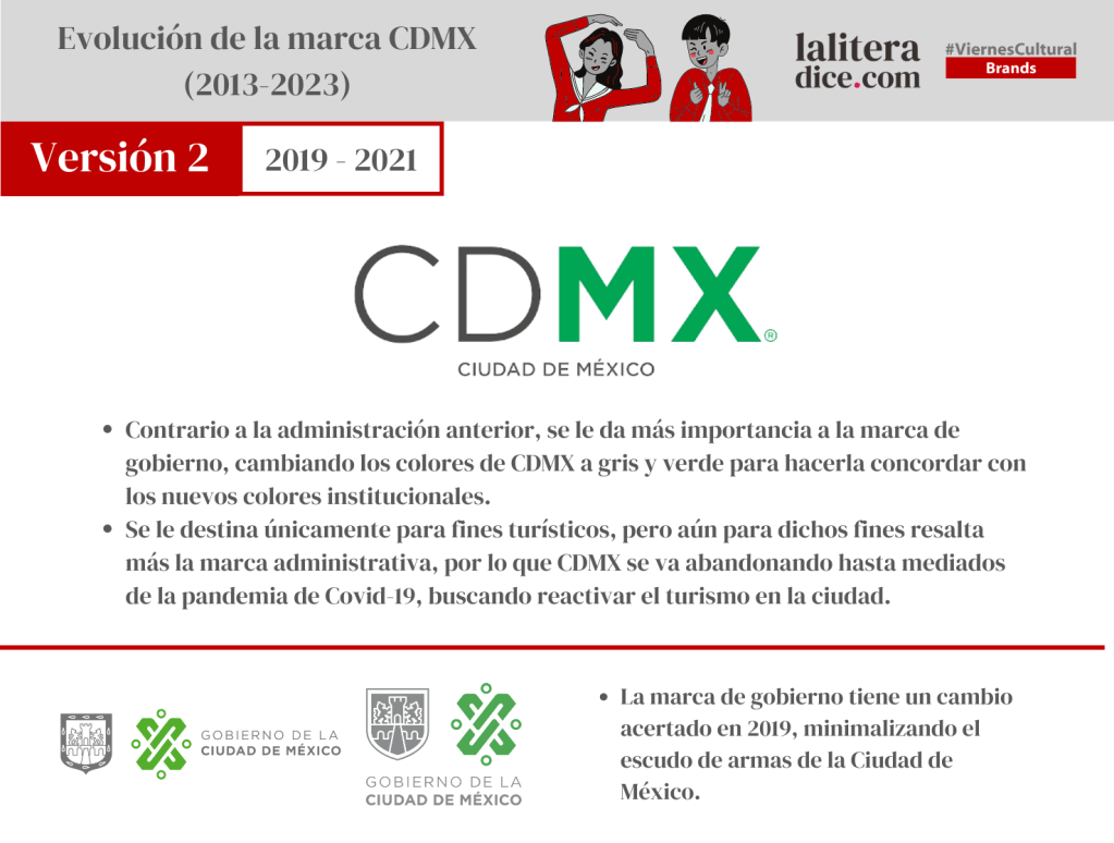Factores como el cambio de estrategia y de apoyo a la marca; la priorización de la marca de gobierno sobre la de la ciudad; el abandono y posterior rescate post pandemia; el constante cambio de colores y la minimización de CDMX aún sólo para fines turísticos, son decisiones que le han quitado identidad a la marca, y por lo tanto, su competitividad frente a otras marcas ciudad en el mundo.