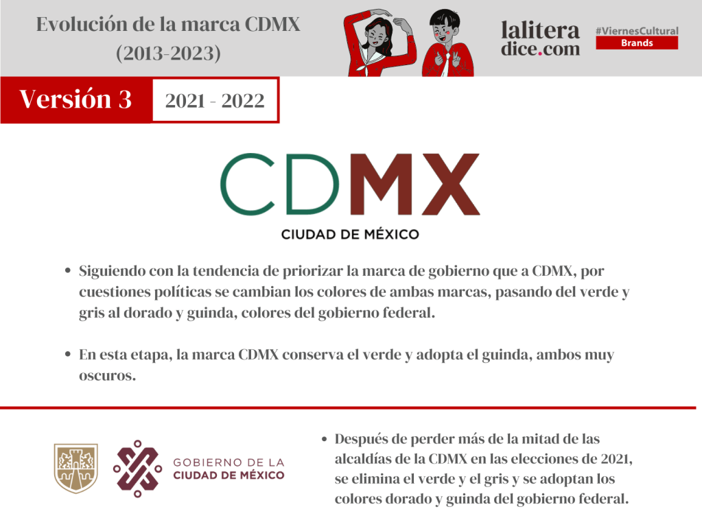 A la par, se empezó a mostrar en algunos promocionales la nueva variante del logo de la CDMX, dejando atrás de forma definitiva el color verde para agregar el color dorado, acompañado del color guinda, mismos colores correspondientes al gobierno federal y también ahora del gobierno de la Ciudad de México.