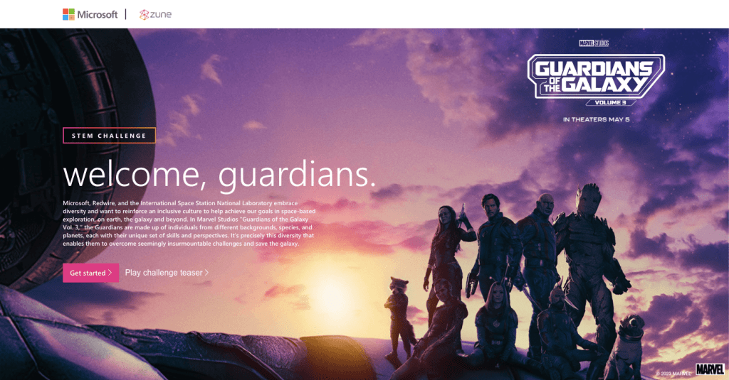 Para esta última entrega de los Guardianes de la Galaxia, Microsoft hizo un convenio más fuerte con Marvel para promocionar la película, activando la página zune.net con diferentes actividades y regalando un Zune que no ha salido nunca de su caja.