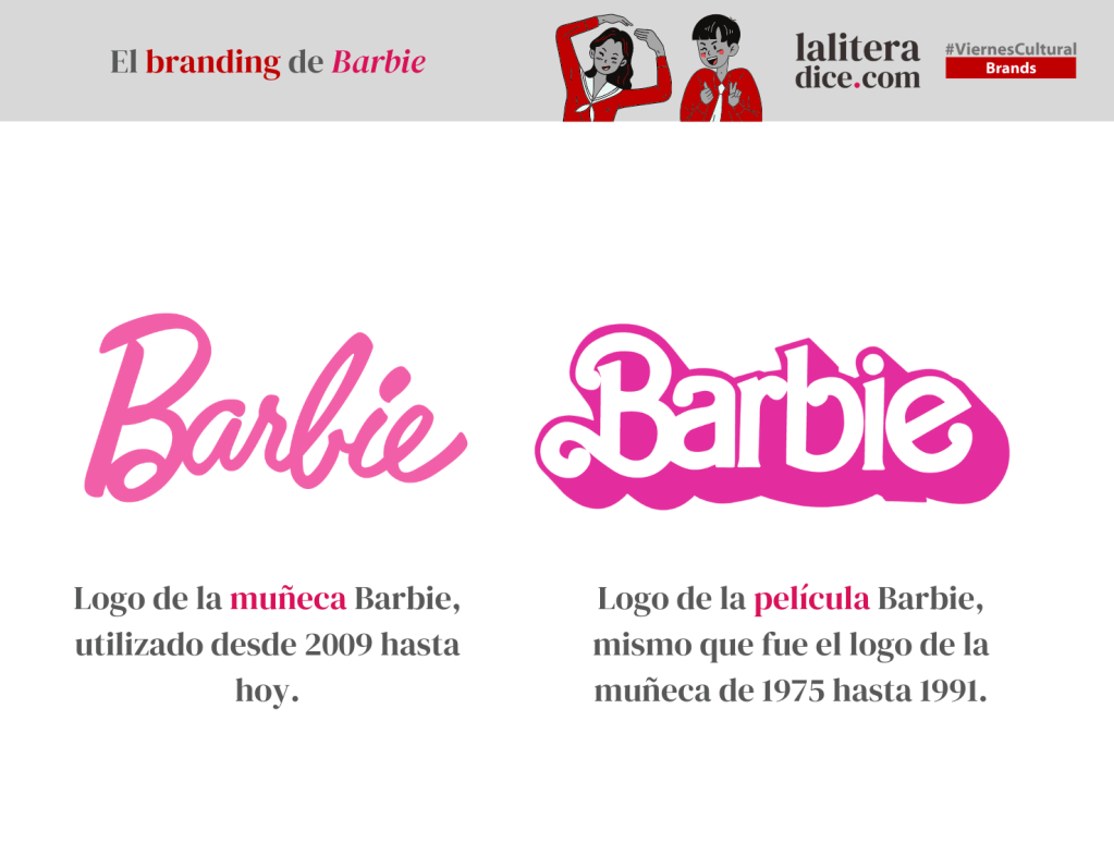 Este es sin duda uno de los aciertos más geniales del equipo de Marketing y Diseño de la película. La marca Barbie y su color rosa son icónicos en la cultura popular desde hace décadas. Era lógico que debían utilizar eso a su favor para la promoción de la película. Sin embargo, tomaron la decisión de usar un logo un poco distinto para diferenciar las muñecas del filme.