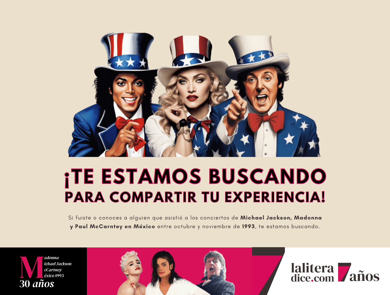 Si fuiste uno de los afortunados en asistir a uno de los conciertos de Michael Jackson, Madonna o Paul McCartney en México en la temporada octubre – noviembre de 1993, ¡Queremos compartir tu experiencia en laliteradice.com!