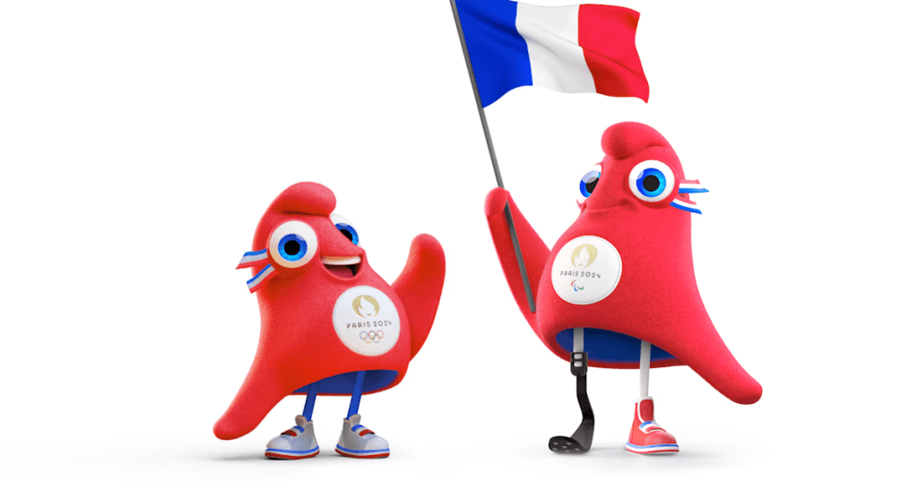 Para París 2024 las mascotas son Los Phryges, inspirados en los tradicionales y pequeños gorros frigios (bonnet phrygien en francés). Se eligieron como símbolos de la libertad y culturalmente representativos de la República de Francia.