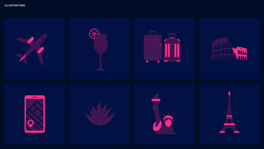 Con un estilo visual que recuerda a los diseños de los años 60’s, estos pictogramas ayudan a crear una atmósfera nostálgica. Su simplicidad y claridad los hacen perfectos para comunicar ideas de manera rápida y efectiva.