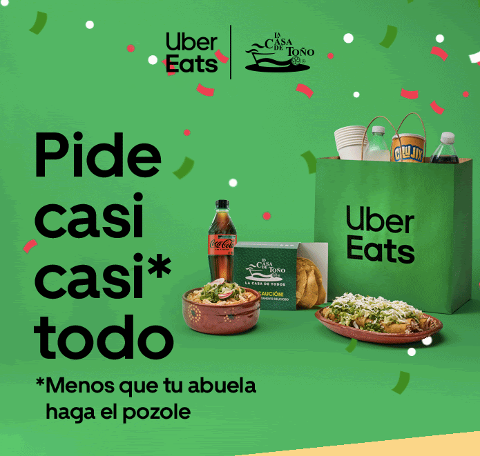 Uber Eats ofrece para esta promoción diferentes descuentos en una amplia variedad de platillos de La Casa de Toño, incluyendo su icónico pozole, además del paquete de tostadas acompañadas de unas botellas de Coca-Cola.