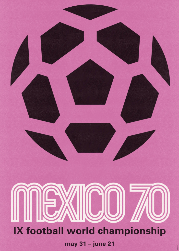 Si el primer artículo de este especial nos llevó por la «Era del Cuero y el Papel«, México 70 representa el Mundial que establece el estándar para el resto de mundiales hasta la fecha. Fue el primer mundial transmitido en televisión a color para todo el planeta, lo que obligó a las marcas y a los diseñadores a pensar, por primera vez, en términos de identidad visual global.
