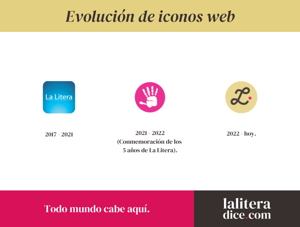 - El segundo ícono (2021 – 2022): Como parte de la conmemoración de los 5 años de La Litera, la huella de una mano representó el símbolo principal de la celebración; por lo que, evidentemente, se aprovechó también para usarse como el ícono web.