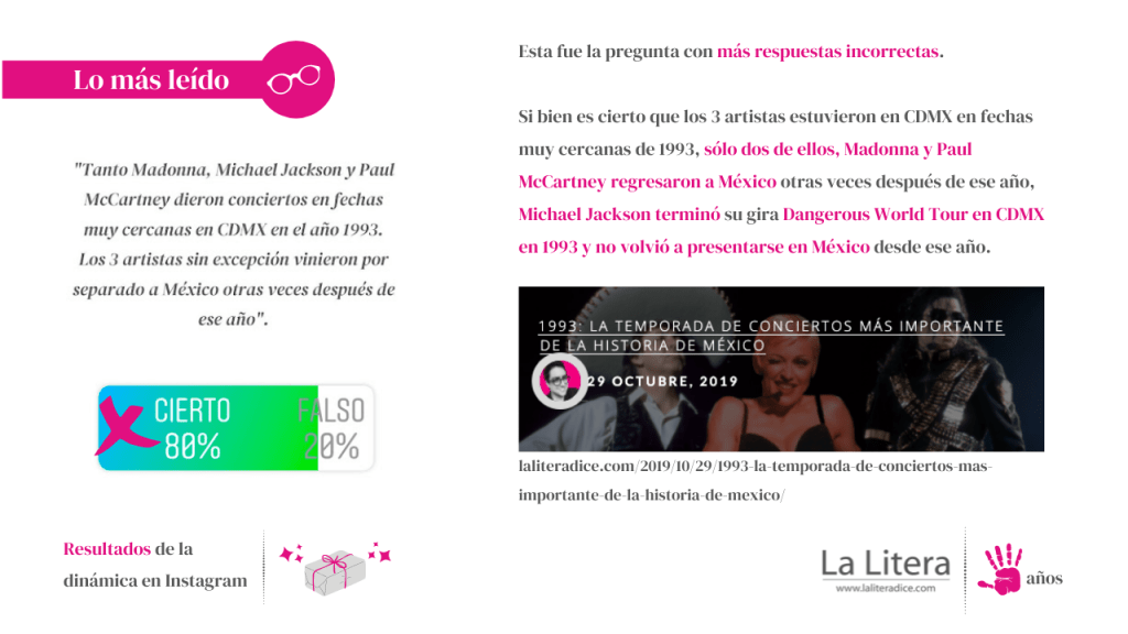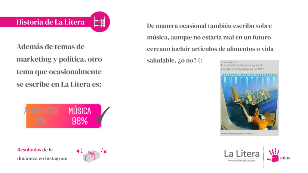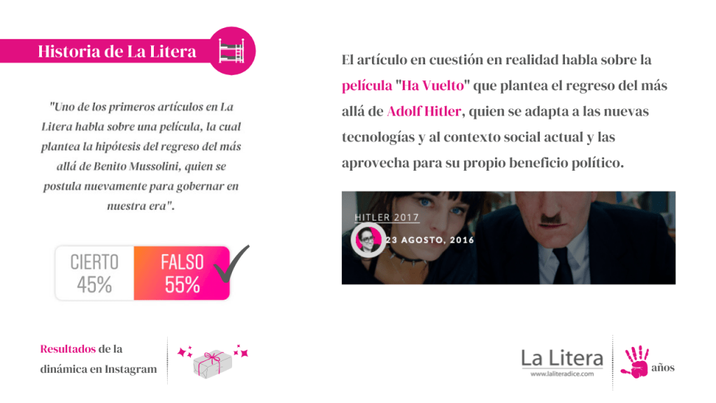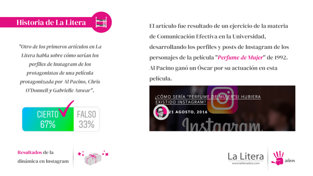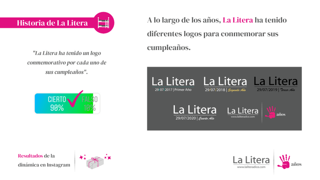 Como parte de la celebración de los 5 años de La Litera, el 29 de julio de 2021 se realizó una dinámica en la cuenta de Instagram @josandrescruz que consistió en un test sobre temas relacionados con la historia y artículos del blog.
