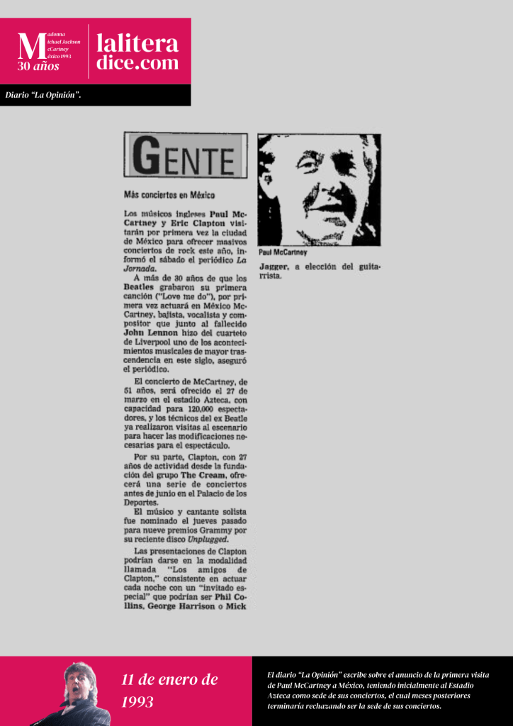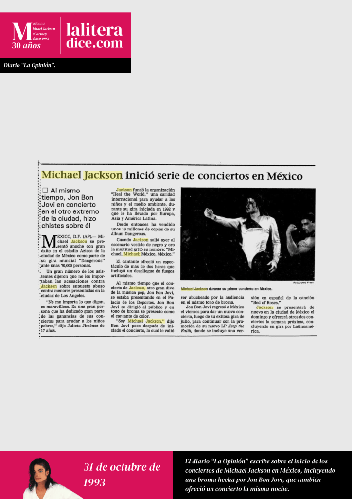 1993: 30 años de Michael Jackson, Madonna y Paul McCarntey en México